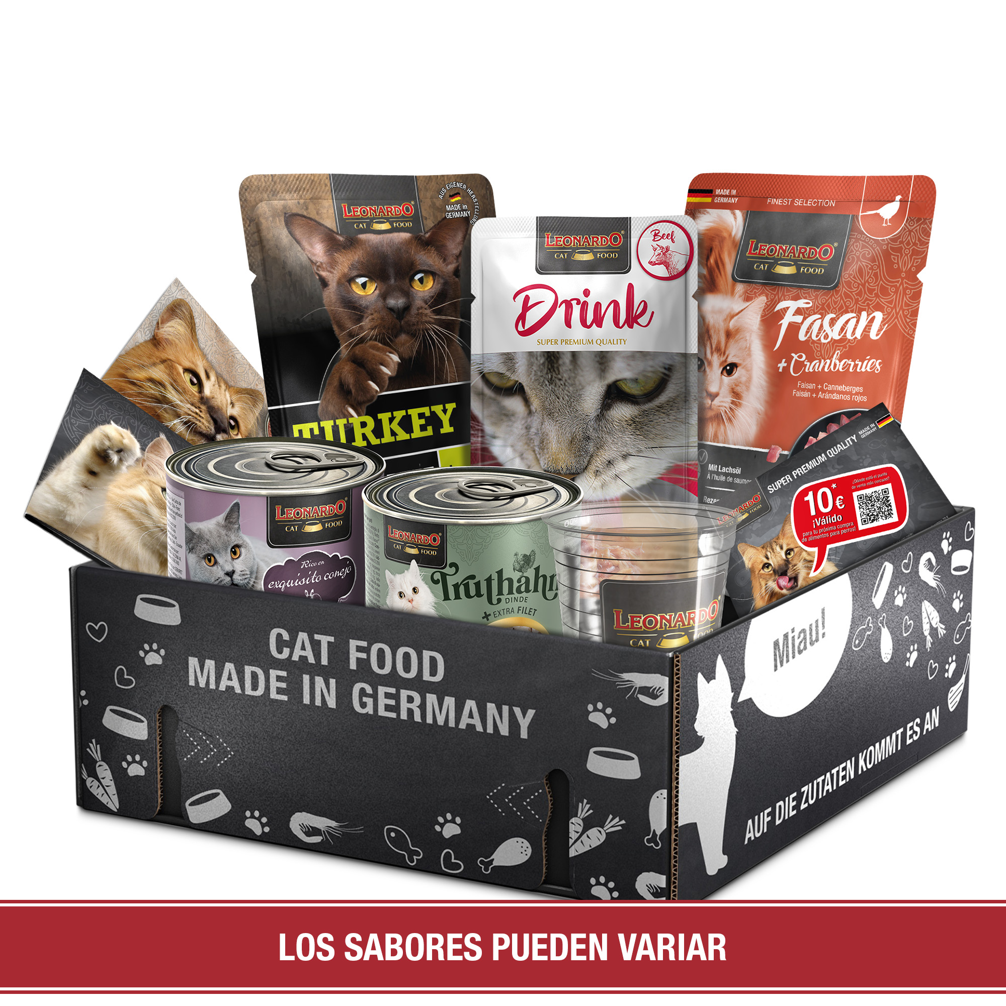 Los productos son una pasada. La caja es perfecta para que los mininos puedan degustar y saber cual prefieren además la entrega fue muy rápida. Vivo en baleares y las entregas suelen tardar mas de 3 días y esta caja llego en 2. Muy recomendable todo!